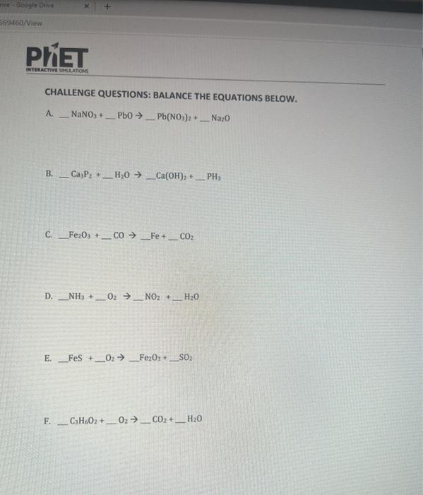 Phet Balancing Chemical Equations Critical Thinking Questions Answers